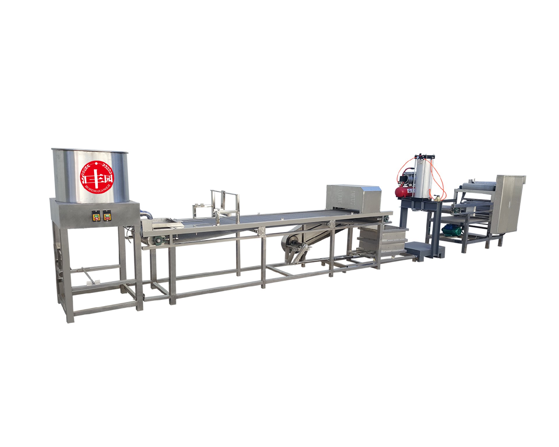 自動(dòng)豆皮機(豆皮機、干豆腐、百頁(yè)、千張)生產(chǎn)線(xiàn),是完成攪腦、潑腦、送料、折疊包布、以及壓皮、扒皮、卷包布等工序1-2人就可生產(chǎn)。大大的降低了勞動(dòng)強度和提高了勞動(dòng)功效。同時(shí)降低了成品生產(chǎn)成本。厚薄寬窄可調、口感勁道滑爽,完全和傳統生產(chǎn)的產(chǎn)品相媲美。本機特點(diǎn):1、仿手工不改變手工的原色原味。2、占地面積小、操作簡(jiǎn)單。3、用電量小,有220V和380V電源供選擇。4、分為90、100普通型和200、300標準型、400、600型工廠(chǎng)型、500仿手工適合做厚皮型。5:便于清洗,使用壽命可到十年以上。