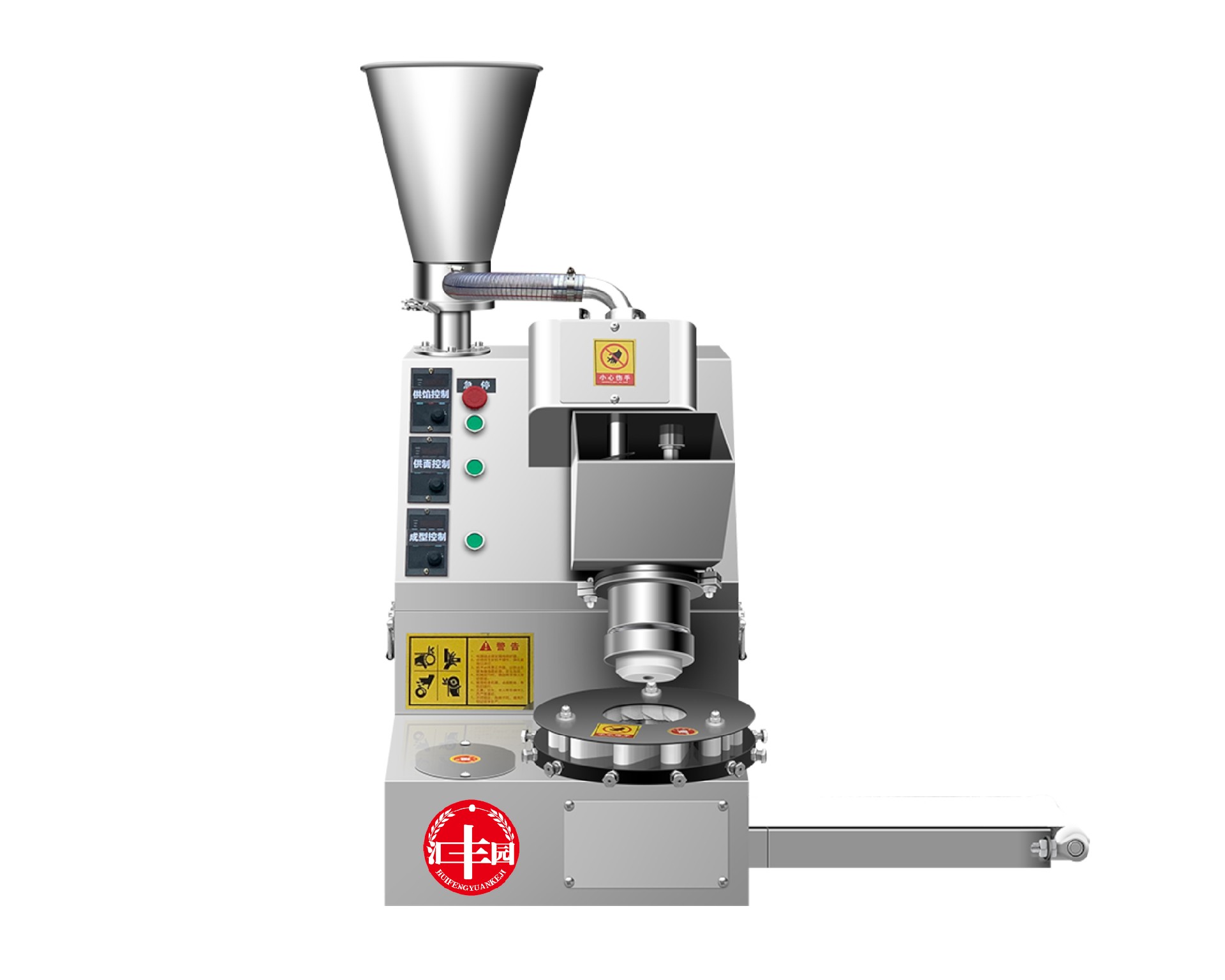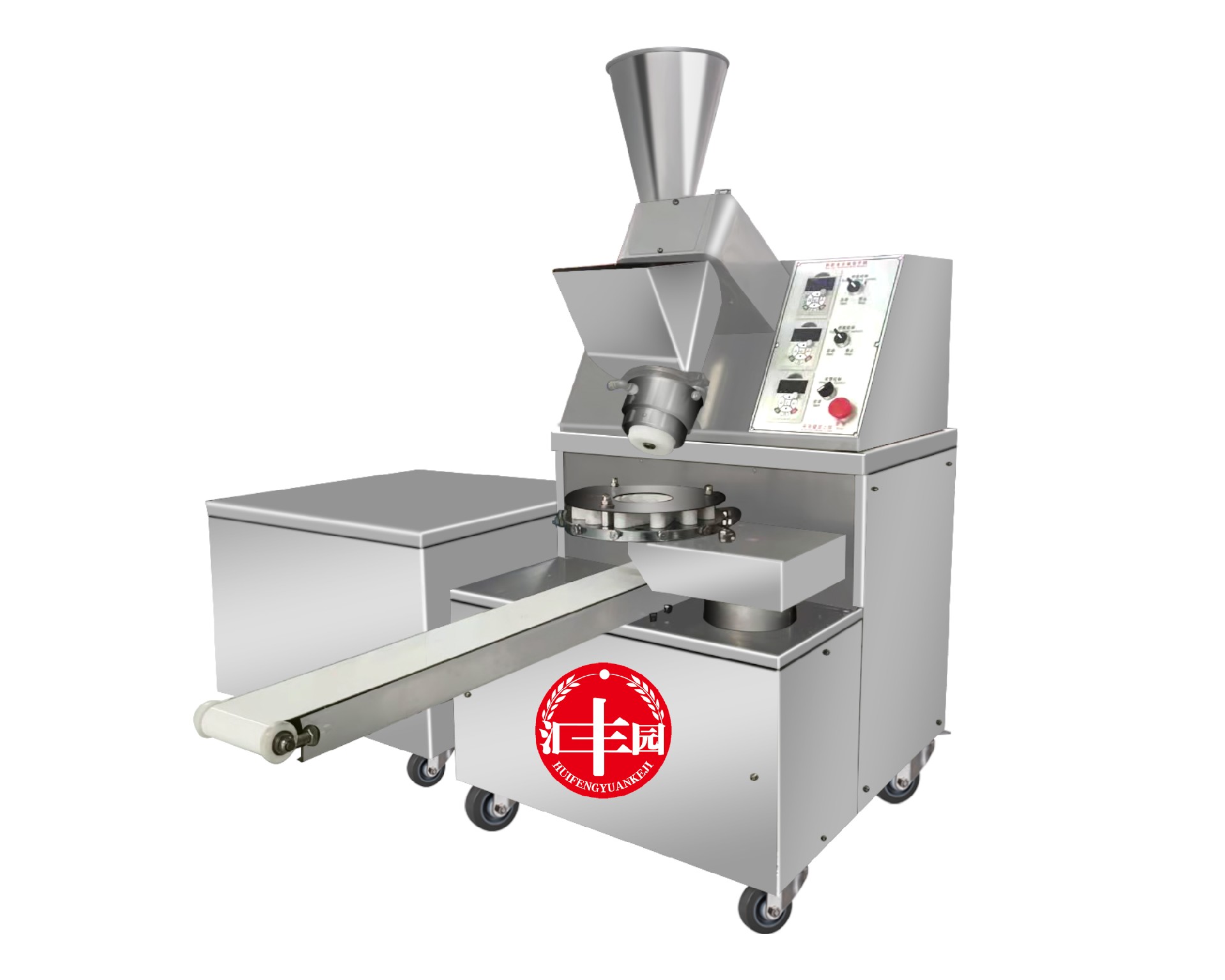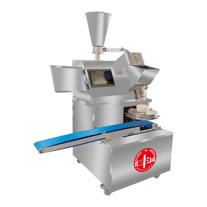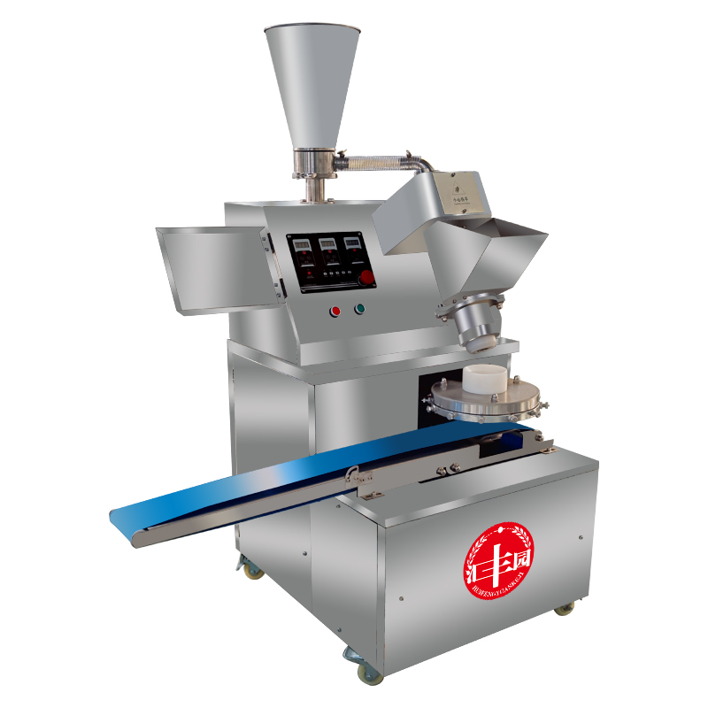 多功能包子機采用螺旋式推面方式,由模具控制面皮的厚薄。面斗中的面由供面調系統,將面送至機頭出口處,形成含餡的面柱后由成型盤(pán)內的成型塊將面柱擠斷成大小均勻的包子。全機的工作部分主要由:送面系統、送餡系統、機頭、成型盤(pán)、輸送帶五部分組成。工作流程:供餡料斗-〉供面斗)-〉加餡加面-〉切斷成型-〉傳送帶-〉醒發(fā)-〉蒸制;優(yōu)勢:采用雙絞龍,螺旋揉面推進(jìn)出面,大螺徑,緩慢勻速出面,面皮受力小,供面速度可調。餡管采用半臥式或立式餡斗裝置,立式有利于改大顆粒餡料的流通,在制作較稀餡料時(shí)可采用半臥式餡斗下均勻。 可加配值可生產(chǎn):餡餅和方型饅頭、圓饅頭等。成型盤(pán)采用軸承傳送,配合刀塊張合防止以前包子機做大包子成型堵面現象。有9褶或12褶和16褶花型供用戶(hù)選擇,進(jìn)口高分子材料刀塊利用科學(xué)原理均衡受力減小,解決了其它包子機成型刀塊靠一塊主刀推動(dòng)其它副刀運動(dòng)易磨損,刀夾面粘面,易受天氣變化而熱脹冷縮不能正常生產(chǎn)的難題,促進(jìn)機器穩定延長(cháng)使用壽命。免費培訓包子制作技術(shù)、及速凍生胚技術(shù);